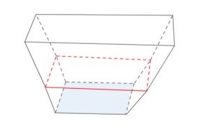 Câu 20. Một dụng cụ đựng nước có dạng như hình bên. Nếu cắt dụng cụ bằng mặt phẳng song song với mặt đáy và cách mặt đáy một khoảng $x$ (cm) $(0 \leq x \leq 5)$ thì được thiết diện là hình chữ nhật có chiều dài là $2x$ (cm) và chiều rộng là $\sqrt{x + 3}$ (cm). Dung tích của dụng cụ trên là bao nhiêu? (Kết quả làm tròn đến chữ số thập phân hàng phần chục).