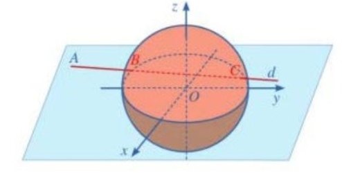 **Câu 6.** Trong không gian hệ trục tọa độ Oxyz (đơn vị trên mỗi trục là kilomet), đài kiểm soát không lưu sân bay Cam Ranh – Khánh Hòa ở vị trí $O(0; 0; 0)$ và được thiết kế phát hiện máy bay ở khoảng cách tối đa 600 km. Một máy bay của hãng Việt Nam Airlines đang chuyển động theo đường thẳng $d$ có phương trình $\begin{cases} x = -1000 + 100t \\ y = -200 + 80t \\ z = 10 \end{cases} (t \in \mathbb{R})$ và hướng về đài kiểm soát không lưu như hình vẽ). Xác định quãng đường mà máy bay nhận được tín hiệu của đài kiểm soát không lưu.