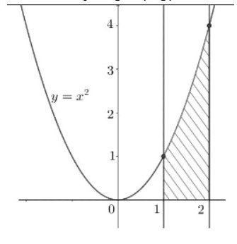b) Diện tích hình phẳng gạch chéo trong hình vẽ là $\int_1^2 x^2 dx$.