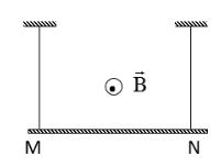 Câu 1. Treo đoạn dây dẫn MN có chiều dài L = 25 cm, khối lượng m, bằng hai dây mảnh, nhẹ sao cho dây dẫn MN nằm ngang cân bằng. Biết cảm ứng từ có chiều như hình vẽ, có độ lớn B = 0,04 T.