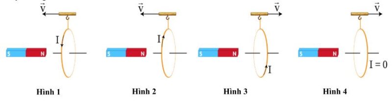 Câu 13: Hình vẽ nào sau đây xác định đúng chiều dòng điện cảm ứng khi cho vòng dây dịch chuyển lại gần hoặc ra xa nam châm?
