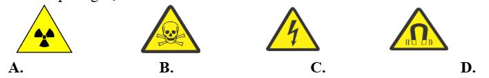 Câu 17. Trên các thiết bị thí nghiệm và trong phòng thí nghiệm thì kí hiệu nào sau đây cảnh báo có tia phóng xạ?