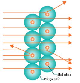 b) Một số ít hạt alpha bị lệch khỏi phương ban đầu cho thấy các hạt alpha đã tương tác với các hạt mang điện dương trong nguyên tử.