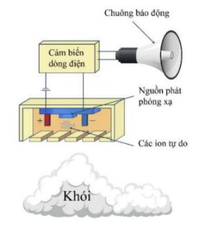 Câu 2. Hình vẽ bên dưới mô tả sơ đồ hoạt động đơn giản hóa của cảm biến báo khói ion hóa.