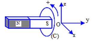 Câu 4. Một vòng dây dẫn kín, tròn, phẳng không biến dạng (C) có diện tích 100 cm² đặt trong mặt phẳng song song với mặt phẳng Oxz, một nam châm thẳng đặt song song với trục Oy và chọn chiều dương trên (C) như hình vẽ.
