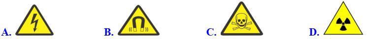 Câu 7. Trên các thiết bị thí nghiệm và trong phòng thí nghiệm thì kí hiệu nào sau đây cảnh báo có tia phóng xạ?