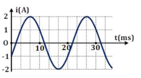 Câu 2: Đồ thị phụ thuộc thời gian của cường độ dòng điện chạy qua một đoạn mạch như hình vẽ. Tìm tần số của dòng điện.