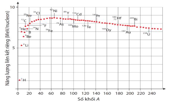 Câu 1. Dựa vào đồ thị biểu diễn mối liên hệ giữa năng lượng liên kết riêng của các hạt nhân với số khối của chúng hãy cho biết các nhận xét dưới đây là đúng hay sai?