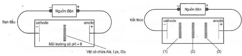 d. (vận dụng)Trong dung dịch pH = 6, có thể tách hỗn hợp gồm glutamic acid và lysine (pI = 9,7) bằng phương pháp điện di.