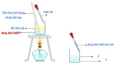 Câu 14 ( Hiểu) Tiến hành thí nghiệm phản ứng xà phòng hóa theo các bước sau đây: Bước 1: Cho vào bát sứ khoảng 1 gam mỡ (hoặc dầu thực vật) và 2 – 2,5 ml dung dịch NaOH 40%. Bước 2: Đun hỗn hợp sôi nhẹ và liên tục khuấy đều bằng đũa thủy tinh. Thỉnh thoảng thêm vài giọt nước để giữ cho thể tích của hỗn hợp không đổi. Bước 3: Sau 8 – 10 phút, rót thêm vào hỗi hợp 4 – 5 ml dung dịch NaCl bão hòa nóng, khuấy nhẹ. Phát biểu nào sau đây sai?