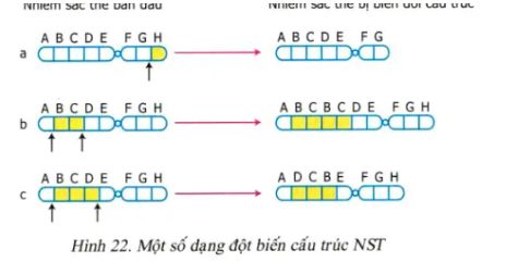 Câu 1: Quan sát Hình 22. Một số dạng đột biến cấu trúc NST, mỗi nhận định sau Đúng hay Sai?