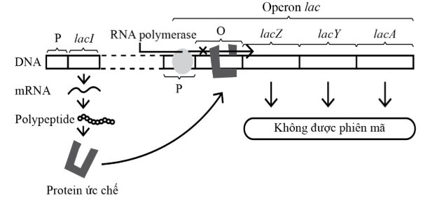 Sơ đồ dưới đây mô tả hoạt động của operon lac khi môi trường không có lactose:
