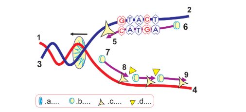 Quan sát hình và cho biết nếu 1 phân tử DNA có 3000 nu tái bản liên tiếp 3 lần thì môi trường nội bào cần cung cấp bao nhiêu nu tự do?
