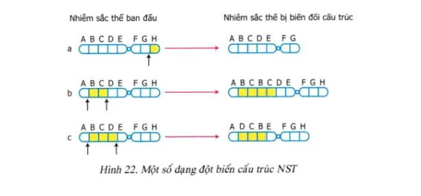 Câu 4: Quan sát Hình 22. Một số dạng đột biến cấu trúc NST, mỗi nhận định sau Đúng hay Sai?