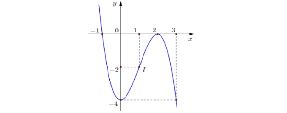 Cho hàm số $y = f(x) = x^3 + ax^2 + bx + 4$ có đồ thị như hình vẽ.