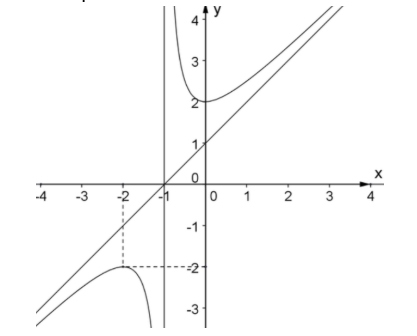 b) Đường tiệm cận xiên của đồ thị hàm số là $y = -x$.