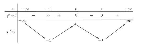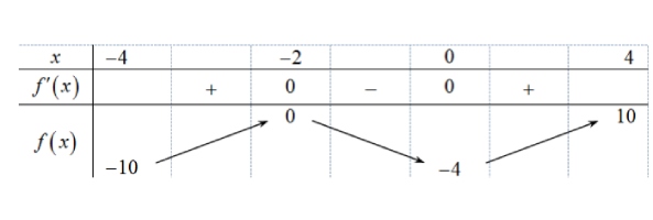 Cho hàm số $y = f(x)$ xác định và liên tục trên $(-4; 4)$ và có bảng biến thiên trên $(-4; 4)$ như sau