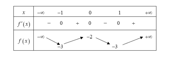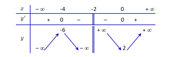 Cho hàm số $y = f(x)$ xác định trên $\mathbb{R} \setminus {-2}$ và có bảng biến thiên như sau: