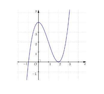 Cho hàm số bậc ba $y = f(x)$ có đồ thị là đường cong như sau