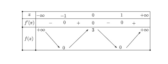 d) Hàm số $y = f(x)$ đạt cực đại tại $x = -1$ và đạt cực tiểu tại $x = 1$.