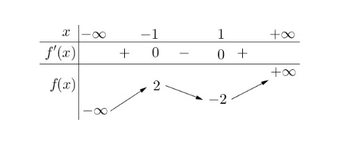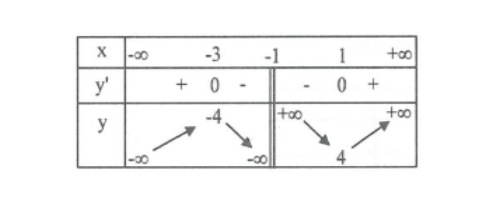 Bảng biến thiên trong hình dưới là đồ thị của một hàm số trong bốn hàm số được liệt kê ở bốn phương án $A, B, C, D$ dưới đây. Hỏi hàm số đó là hàm số nào?