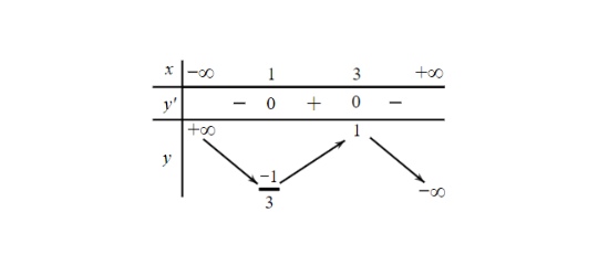 Cho hàm số $y = f(x)$ có bảng biến thiên như hình dưới đây. Tìm giá trị lớn nhất của hàm số $g(x) = f(4x – x^2) + \frac{1}{3}x^3 – 3x^2 + 8x + \frac{1}{3}$ trên đoạn $[1; 3]$.