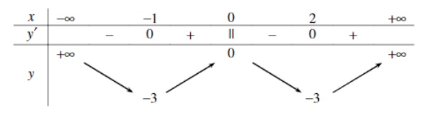b) Hàm số đã cho có cực tiểu bằng $-1$ và 2.