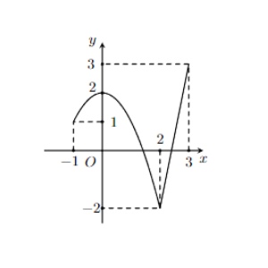 Cho hàm số $y = f(x)$ liên tục trên đoạn $[-1; 3]$ và có đồ thị như hình vẽ. Gọi $M$ và $m$ lần lượt là giá trị lớn nhất và giá trị nhỏ nhất của hàm số đã cho trên đoạn $[-1; 3]$. Giá trị của $M – m$ bằng: