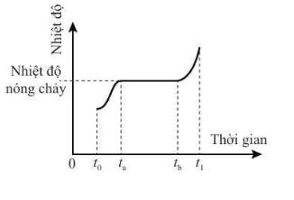 Câu 7. Hình bên là đồ thị sự thay đổi nhiệt độ của chất rắn kết tinh khi được làm nóng chảy. Trong khoảng thời gian từ $t_a$ đến $t_b$ thì