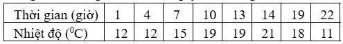 Câu 1. Bảng sau đây ghi sự thay đổi nhiệt độ của không khí theo thời gian dựa trên số liệu của một trạm khí tượng ở Hà Nội ghi được vào ngày mùa đông.