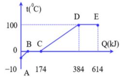 d) Lượng nhiệt nước đá hấp thu trong đoạn DE là 230 kJ