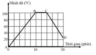 Câu 15. Hình bên dưới là đường biểu diễn sự thay đổi nhiệt độ theo thời gian của nước khi được đun nóng và để nguội. Thời gian xảy ra sự sôi là bao lâu?