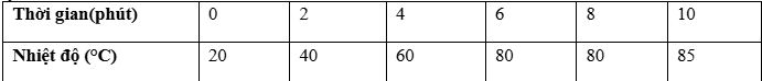 Câu 3. Cho bảng theo dõi nhiệt độ nóng chảy của một chất rắn như sau. Chất rắn này có nhiệt độ nóng chảy là bao nhiêu?