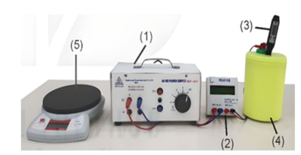 Câu 10. Hình bên dưới là các dụng cụ đo nhiệt dung riêng của nước. Dụng cụ số (4) là