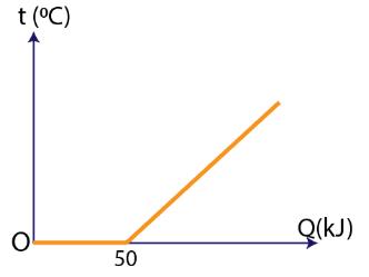 Câu 5. Một hỗn hợp gồm nước và nước đá có nhiệt độ $0°C$. Khối lượng hỗn hợp là $10kg$. Người ta tiến hành thực hiện do nhiệt độ của hỗn hợp. Đồ thị phụ thuộc nhiệt độ vào thời nhiệt lượng cung cấp cho hỗn hợp được cho bởi hình bên. Biết nhiệt nóng chảy của nước đá $\lambda = 3,4 \times 10^5 J/kg$ (bỏ qua sự mất mát nhiệt ra môi trường). Khối lượng nước đá có trong hỗn hợp ban đầu là bao nhiêu $kg$