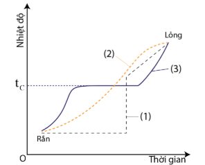 Câu 4: Hình bên là đồ thị phác họa sự thay đổi nhiệt độ theo thời gian trong quá trình chuyển thể từ rắn sang lỏng của chất rắn kết tinh và chất rắn vô định hình trong ứng lần lượt là