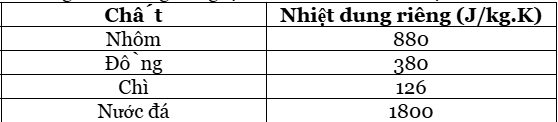 Câu 1: Một người thực hiện thí nghiệm đo nhiệt dung riêng nóng chảy của một chất X và lập được bảng số liệu sau:
