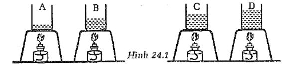 Câu 18: Có 4 bình A. B. C. D đều đựng nước ở cùng một nhiệt độ với thể tích tương ứng là 1 lít, 2 lít, 3 lít, 4 lít. Sau khi đựng các đèn cồn hết nhau để đun các bình này trong 8 phút ta thấy các nhiệt độ trong các bình này khác nhau. Hỏi bình nào có nhiệt độ cao nhất? (Coi rằng chưa có bình nào sôi và cạn hết nước)