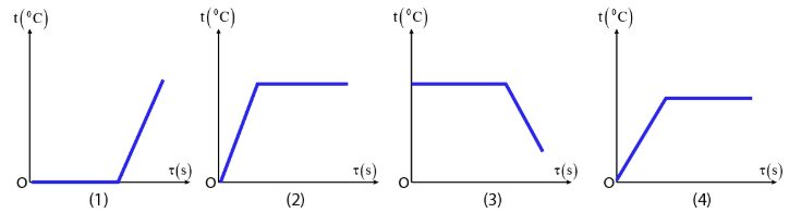 Câu 12: Đồ thị nào sau đây biểu diễn sự thay đổi nhiệt độ theo thời gian của viên nước đá ở $0°C$ trong bình nhiệt lượng kế.