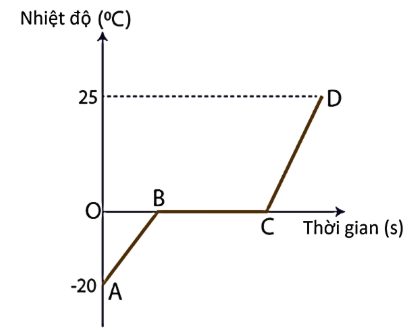 Câu 1: Quá trình biến đổi trạng thái của một khối nước đá từ trạng thái rắn sang trạng thái lỏng được biểu diễn dưới dạng đồ thị phụ thuộc của nhiệt độ theo thời gian như hình vẽ. Đoạn đồ thị ứng với thời gian xảy ra sự nóng chảy của khối nước đá là