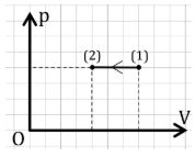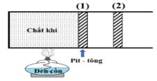 Câu 4: Một xy lanh đặt nằm ngang được đậy kín bởi một pit tông như hình vẽ, pit tông có thể chuyển động không ma sát, bên trong xy lanh có một lượng khí xác định. Đột nóng khối khí trong xi lanh bằng nguồn lửa đến cổn, khí dãn nở đẩy pit tông dịch chuyển từ vị trí (1) đến vị trí (2).