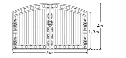 Câu 5. Ông An muốn làm cửa rào sắt có hình dạng và kích thước như hình vẽ bên, biết đường cong phía trên là một Parabol. Giá 1 (m²) của rào sắt là 700.000 đồng. Hỏi ông An phải trả bao nhiêu tiền để làm cái cửa sắt như vậy (làm tròn đến hàng phần nghìn).