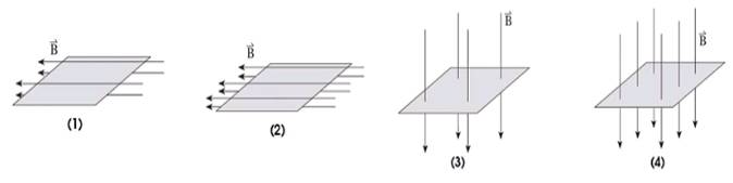 Câu 15. Hình vẽ nào sau đây cho biết từ thông gửi qua điện tích của khung dây dẫn có giá trị lớn nhất?