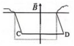 Câu 4. Một dây dẫn cứng có điện trở không đáng kể, được uốn thành khung ABCD nằm trong mặt phẳng nằm ngang, có AB và CD song song với nhau, cách nhau một đoạn l =0,5 m và được đặt trong một từ trường đều có cảm ứng từ B = 0,3 T hướng vuông góc với mặt phẳng của khung như hình vẽ. Một thanh dẫn MN có điện trở R = 0,25 Ω đang trượt đều với vận tốc v = 2,4 m/s không ma sát dọc theo hai cạnh AB và CD.