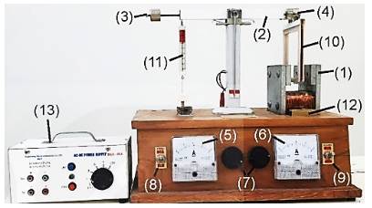 Câu 3. Để khảo sát lực từ tác dụng lên đoạn dây dẫn mang dòng điện người ta sử dụng thiết bị như hình bên. Dụng cụ số (13) và (1) là gì?