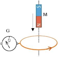 Câu 4. Một học sinh thực hiện thí nghiệm như sau: Dùng khung dây dẫn nối với điện kế G tạo thành mạch kín. Cho một thanh nam châm chuyển động tiến gần về phía khung dây như hình bên.
