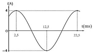 Câu 1. Dòng điện xoay chiều chạy qua một đoạn mạch có cường độ biến thiên điều hòa theo thời gian được biểu diễn bằng đồ thị như hình bên. Dòng điện này có tần số bằng bao nhiêu hertz (Hz)?