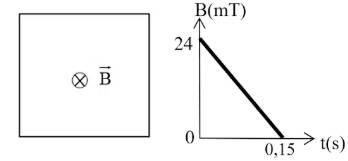 Câu 5. Một khung dây dẫn kín hình vuông, cạnh 16 cm đặt trong từ trường đều, độ lớn cảm ứng từ B = 0,03 T. Biết vector pháp tuyến của mặt phẳng khung dây cùng hướng với vector cảm ứng từ. Giả sử trong thời gian 0,1 s, khung dây được định hình lại thành một hình tròn. Độ lớn suất điện động cảm ứng sinh ra trong khung dây bằng bao nhiêu mili volt (mV)? (Kết quả viết làm tròn 1 chữ số sau dấu phẩy thập phân)