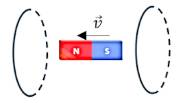 Câu 9. Di chuyển nam châm giữa hai vòng dây như hình bên. Hình nào mô tả đúng chiều dòng điện cảm ứng xuất hiện trong hai vòng dây