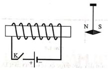 Câu 1. Cho sơ đồ mạch điện và kim nam châm được treo như hình vẽ. Khi đóng công tắc K thì kim nam châm sẽ